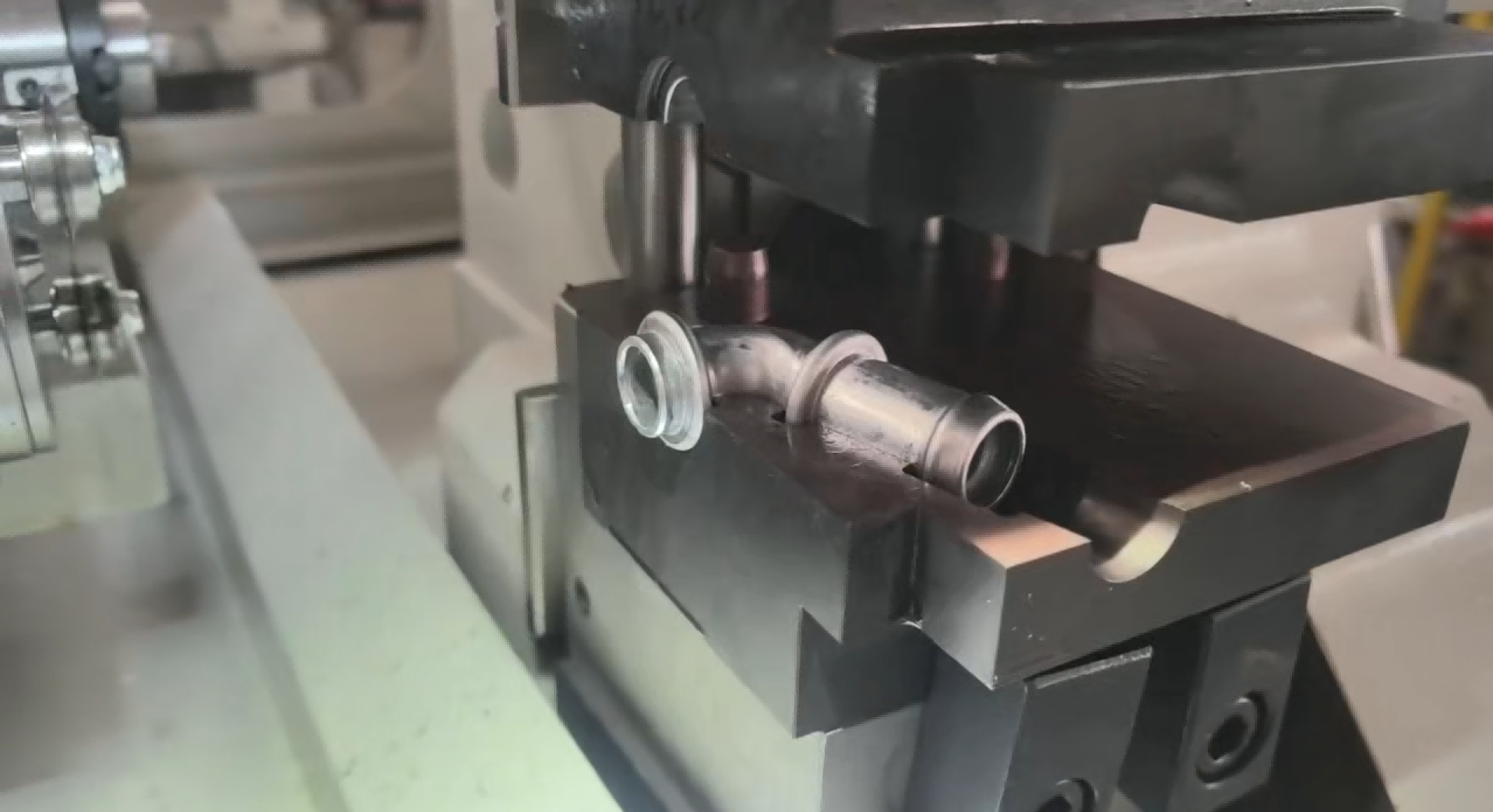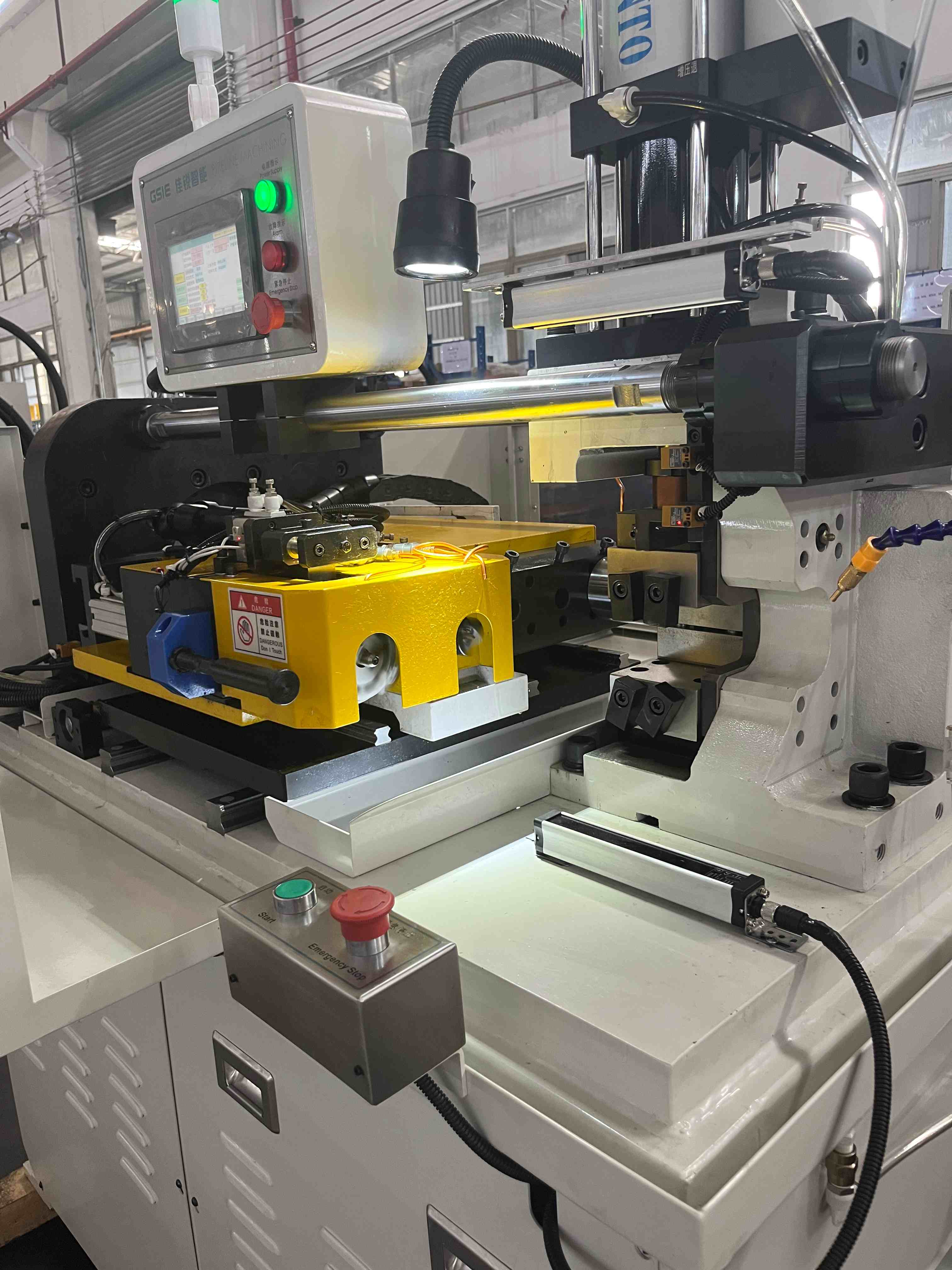 本设备是专用于管件单次装夹完成去尾料、倒角及端末成型的自动化设备。